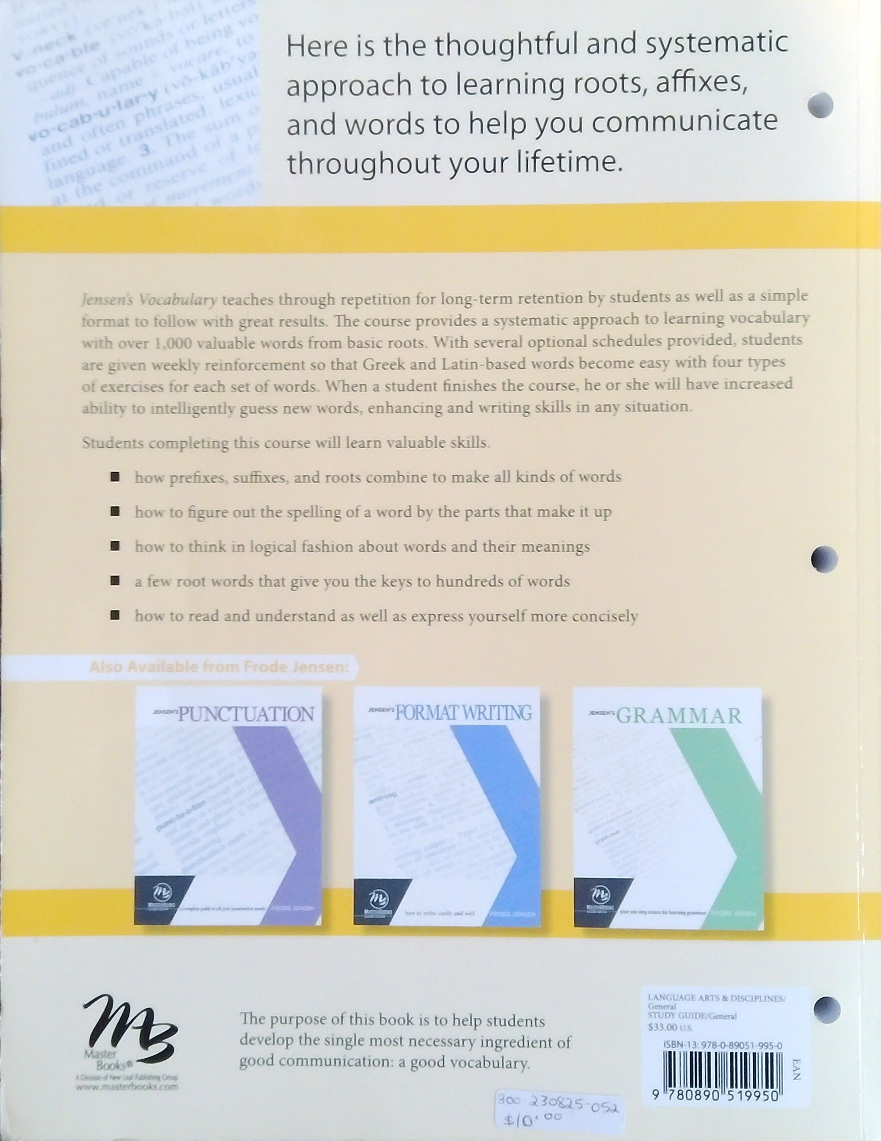 The easy way to a great vocabulary, by Frode Jensen. Second edition, fom MasterBooks. Softcover, good condition; used in pencil up to page 150.