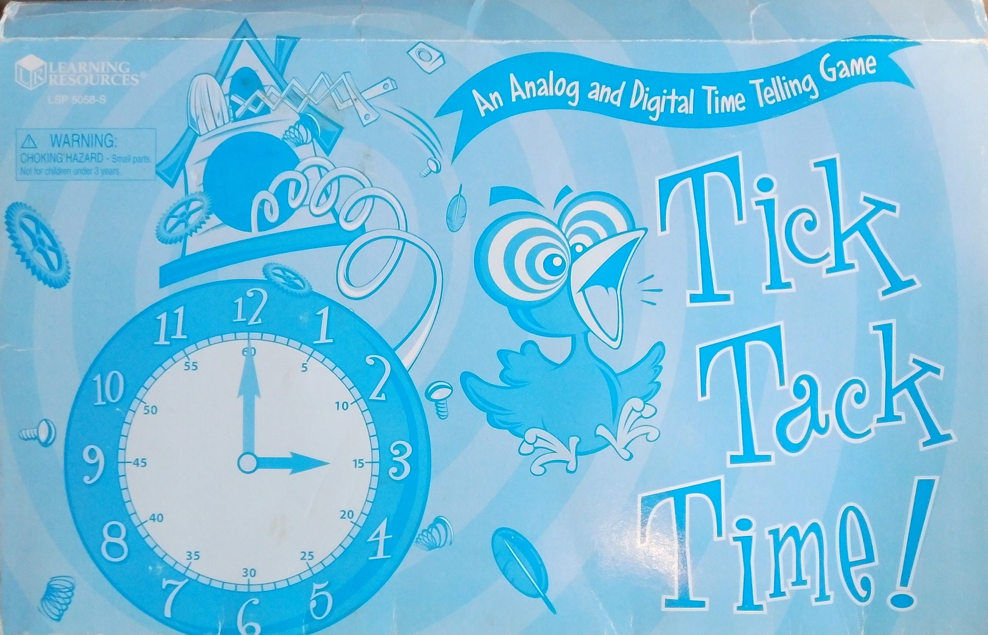 An Analog and Digital time Telling Game. Includes game board with clock, game cards, and bonus Time and Money flashcards.